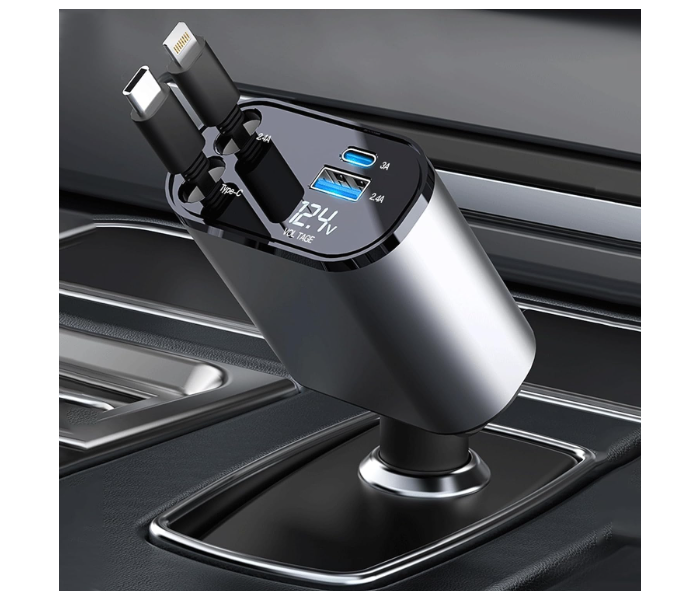 شاحن للسياره من شركه MARVERS مع كيبلين متصلات قابله للسحب TYPE-C و lightning بقوة 100W